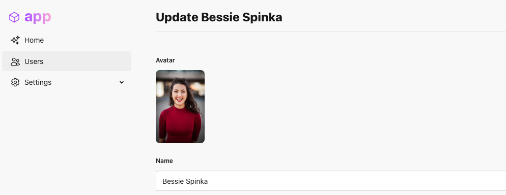 <x-form wire:submit="save"> <x-file label="Avatar" wire:model="photo" accept="image/png, image/jpeg"> <img src="{{ $user->avatar ?? '/empty-user.jpg' }}" class="h-36 rounded-lg" /> </x-file> <x-input label="Name" ... /> ...</x-form>