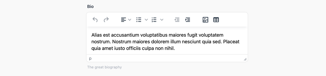 <x-choices-offline ... /><x-editor wire:model="bio" label="Biography" hint="The great biography" />